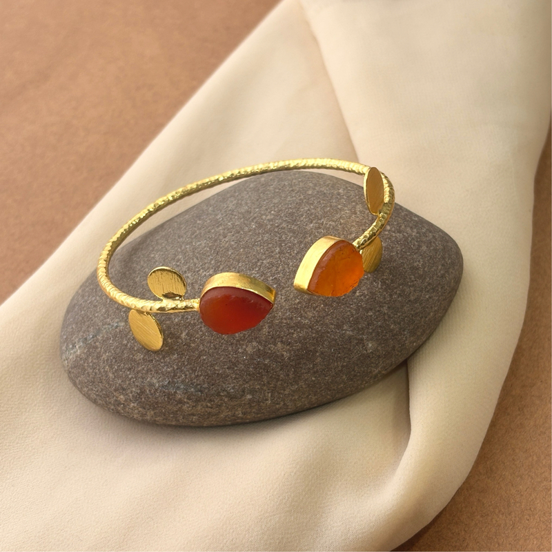 2 Collet Drop Rough Stone With Tikli Hammered Wire Bangles