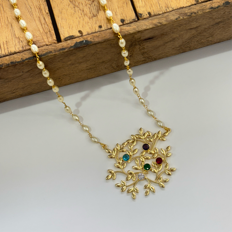5 HG Stone Leaf Design 2 Kadi Pendant With Pearl Filled Chain