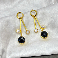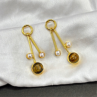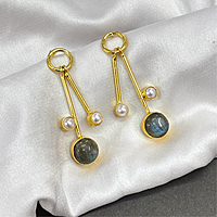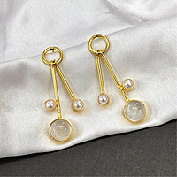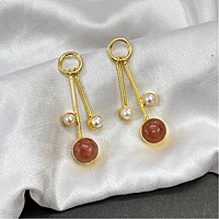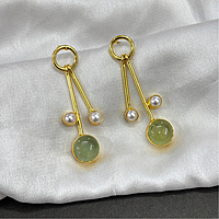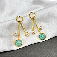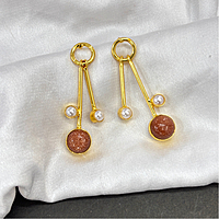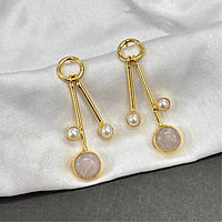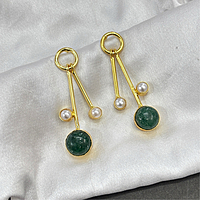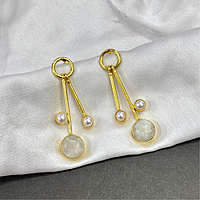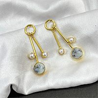 Round Real Stone With S Pearls Stick Studs