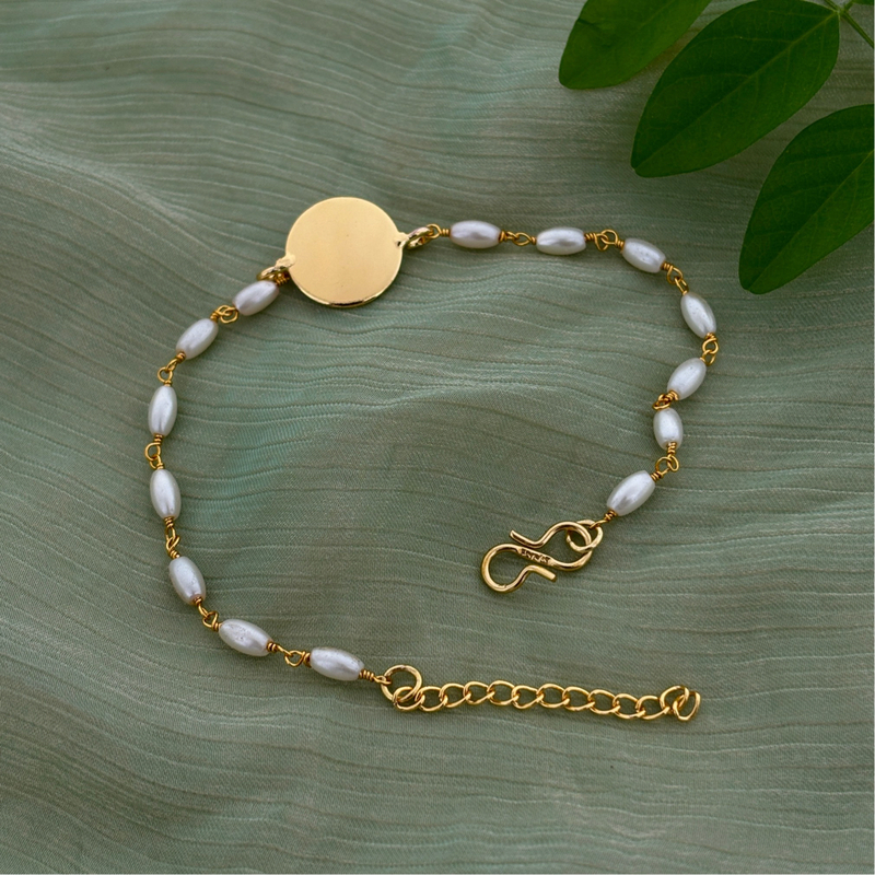 Plain Round Tikli With Rice Pearl Chain Bracelet