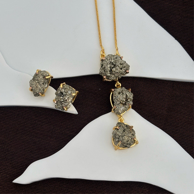 3 Pyrite Rough Stone With Studs Sets