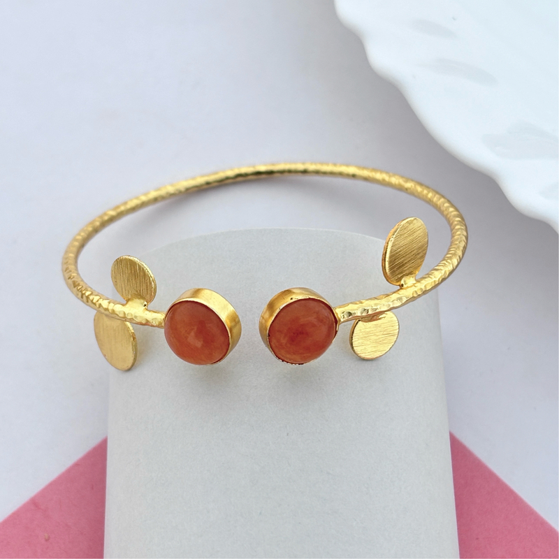 Real Stone Round Double Stone Hammed Wire Bangles
