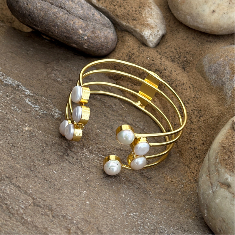 8 Collet Real Pearl Bangles