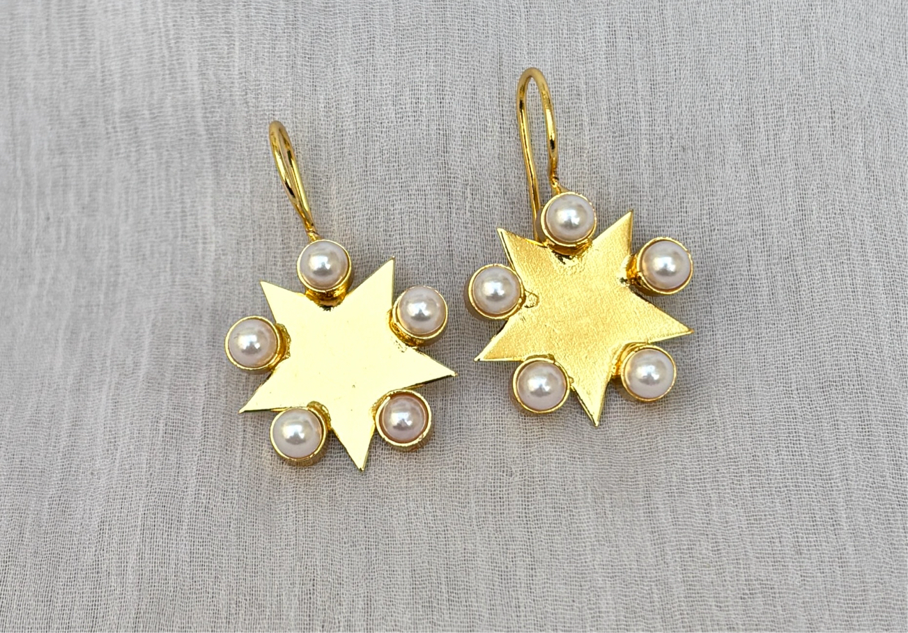 10 S Pearl Star Design Earrings