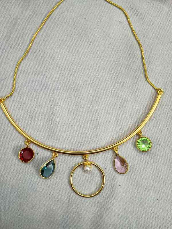 Plain Half Round 1 S-pearl+4 HG Collet Necklace