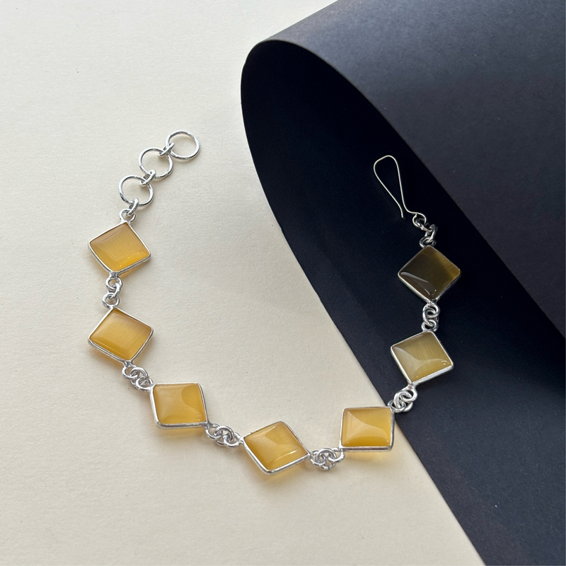 7 Collet HG Square Shape Silver Bracelet