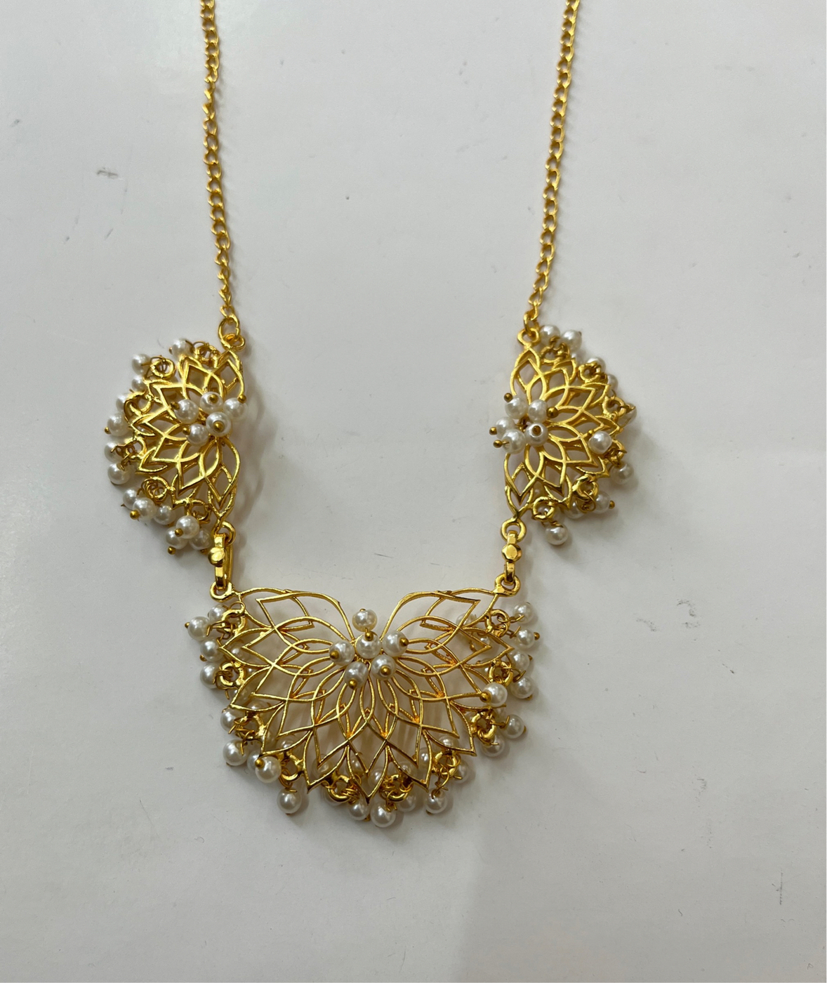 Half Flower Chain Necklace (M+S)- Pearl Filled