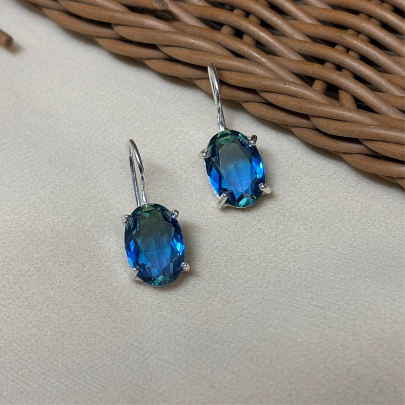 HG Duplate Stone Claw Type Oval Earrings (Silver)