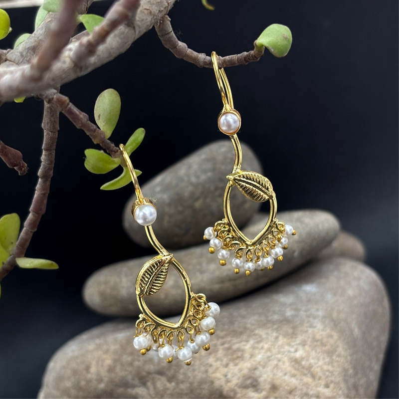 Round S Pearl With Leaf Casting and Pearl Filled Earrings