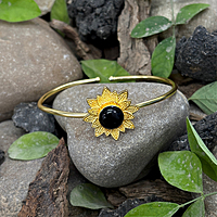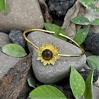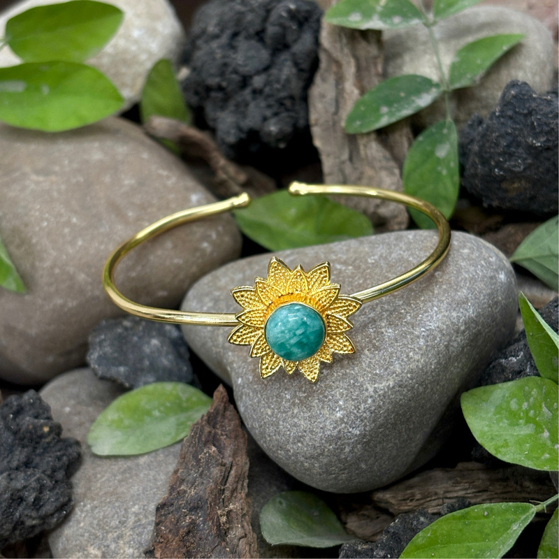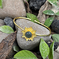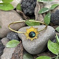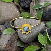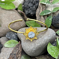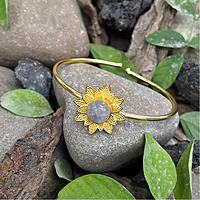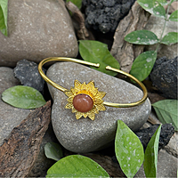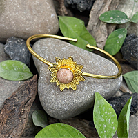 Round Real Stone Flower Casting Bangles