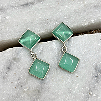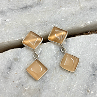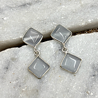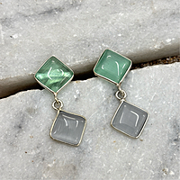 4 Cab Stone With Silver Plating Square Shape Studs