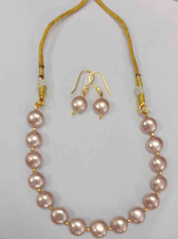 Round Color TS Pearl Necklace With Earrings (3 Pc Set)