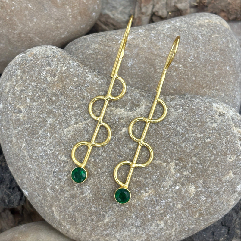 Round Hg Stone Zig Zag Earrings