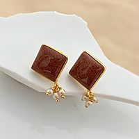 Square Cab Stone With Pearl Filled Studs