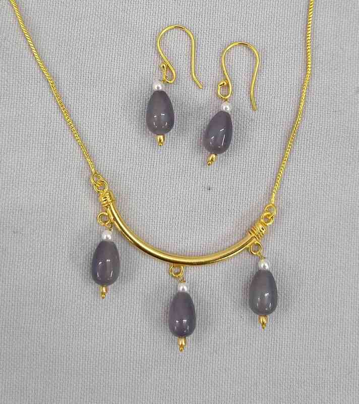 Plain Half Moon 3 Kadi Colour Drop Pendant With Earring