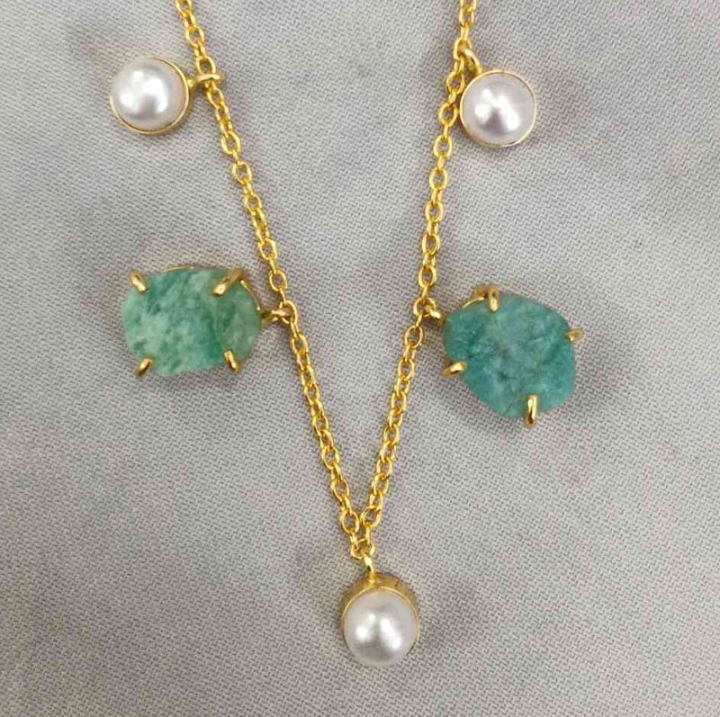 2 Collet Rough With 3 S Pearl Claw Type Necklace