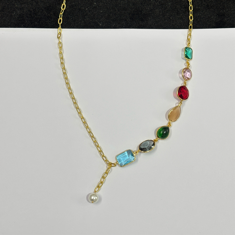 7 Collet Mix Stone With Pearl Necklace