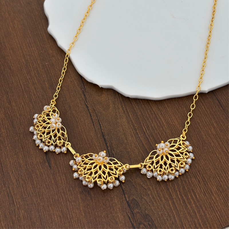 3 Half Flower Pearl Filed Necklace