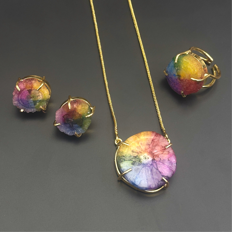 Solar Rough Stone Pendant With Studs and Rings Claw Type(4 Pc Set)