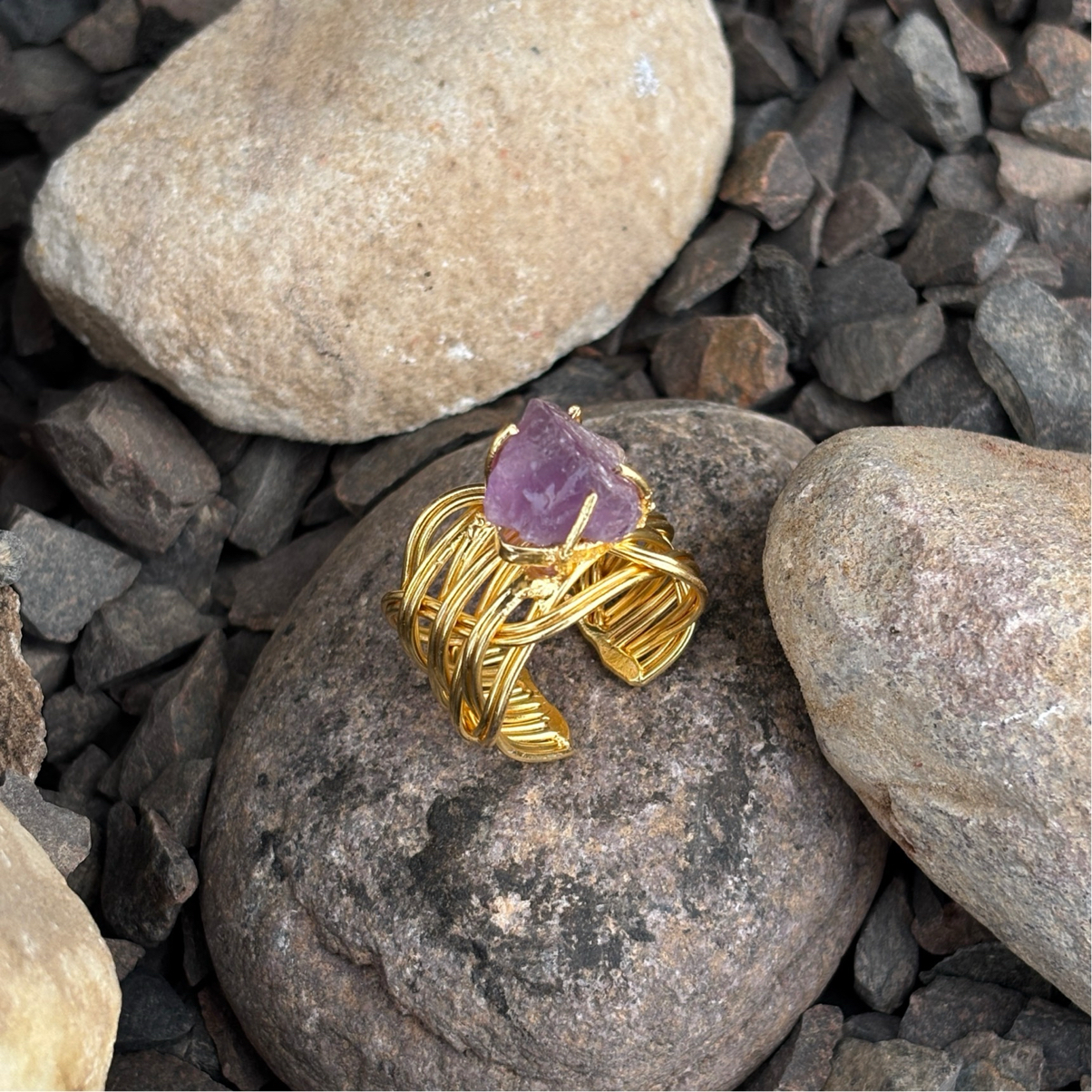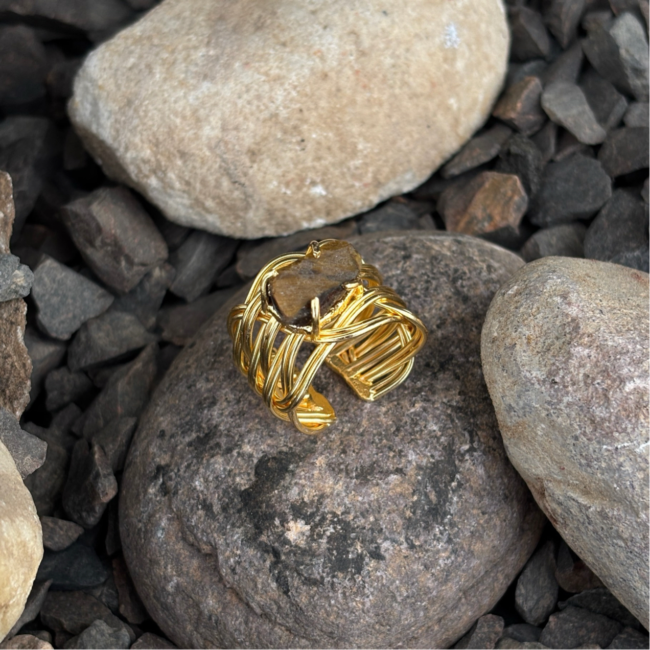 Plain Multi Wire Rough Stone Claw Type Ring