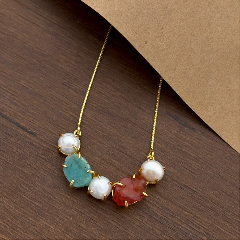 5 Multi Stone Claw Type Pendant ( Rough+Pearl )